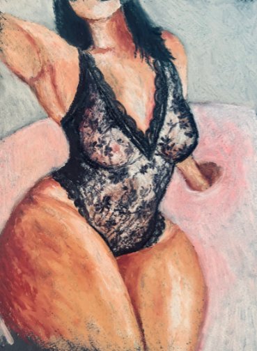 The work reflects lived experience and LGBTQ+ representation, exploring intimacy, self-recognition, and love for all of our bodies. Esin is a graduate of the School of Visual Arts in New York City and a mother of two adult children.